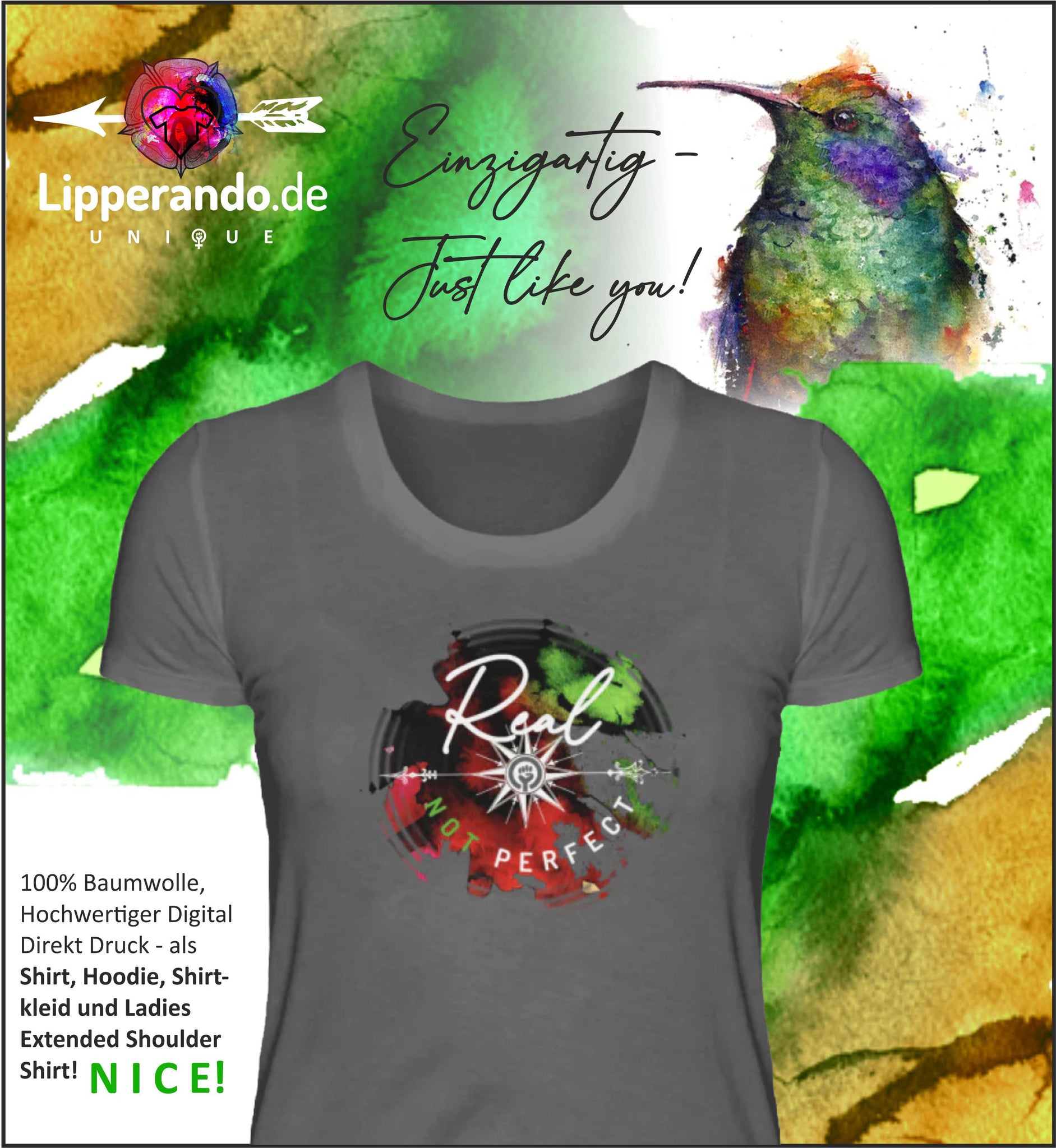 • Lade das Bild in den Galerie-Viewer, LIPPERANDO UNIQUE - REAL not PERFECT  - Stella Spinner T-Shirt Kleid ST/ST